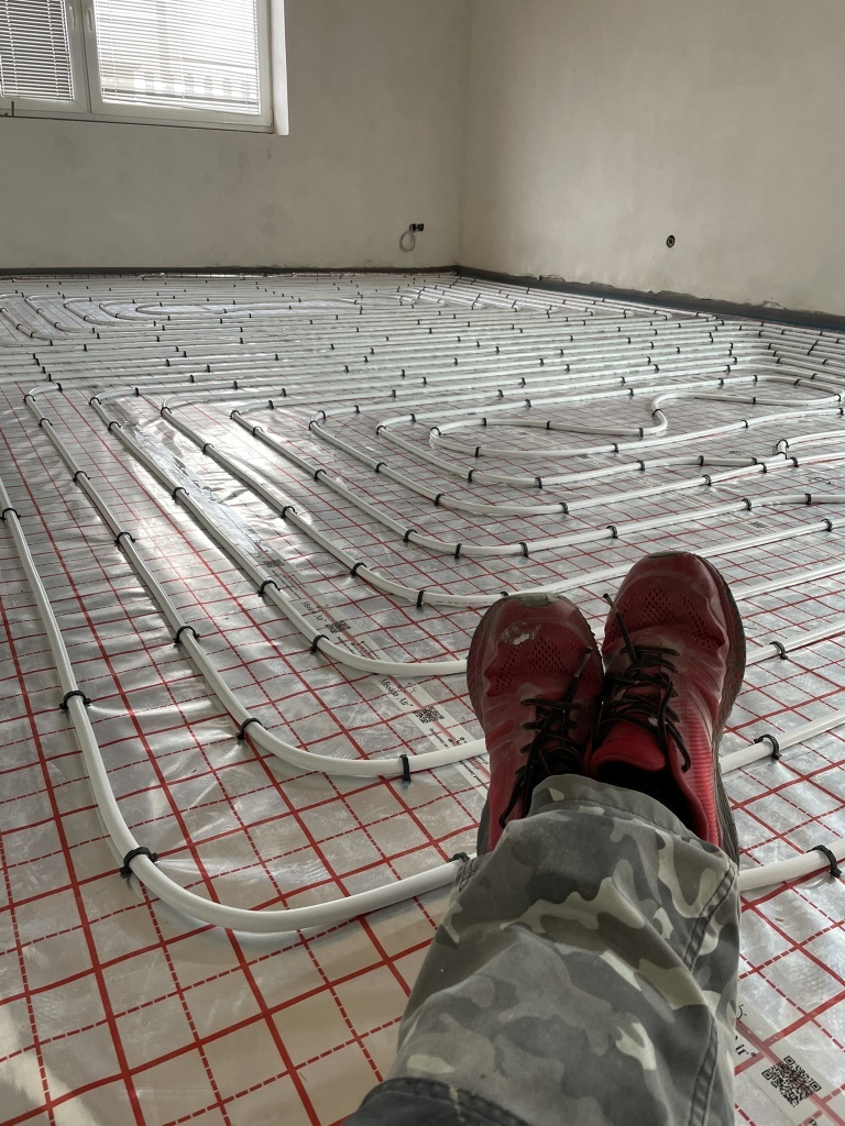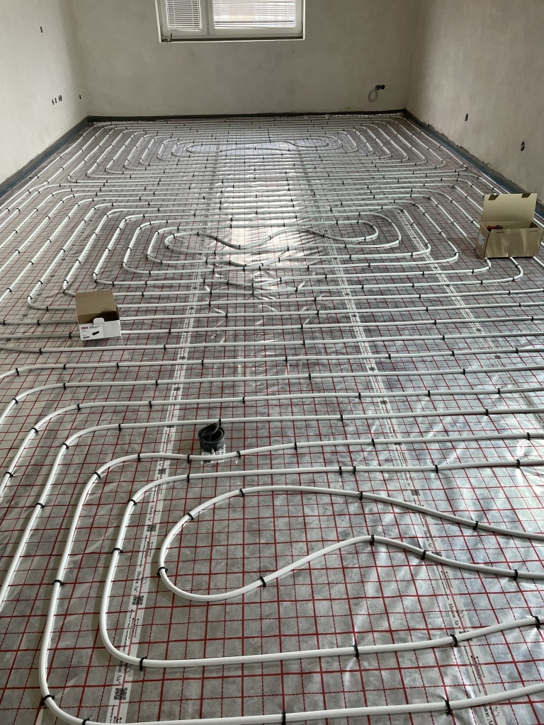 Podlahové topení…. máte dvě možnosti, buď si zavoláte firmu a nebo otevřete NET a kouknete se na to jak se to dělá. Je toho plnej YouTube, to mi věřte. Od kamaráda instalatéra, co nemá čas, si necháte poradit materiál (ten už byl jasnej po koupelně), proberete plán a vrhnete se na to.